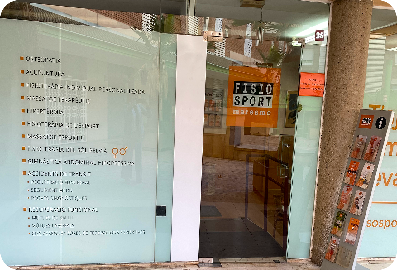 El centre de fisioteràpia i osteopatia FISIOSPORT MARESME es troba al cor de Premià de Mar, en una zona molt accessible tant a peu com en transport públic o vehicle privat. Ens trobaràs a l’interior de les Galeries La Lió, a la Plaça Romà Piera i Arcal, 4, local 26, un punt de referència fàcil de localitzar al centre de la vila.